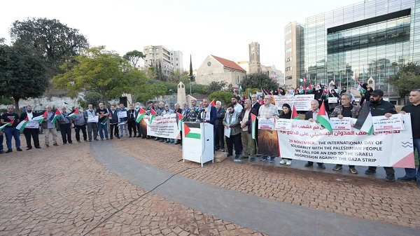 شهدت ساحة (الإسكوا) في بيروت، عصر اليوم الخميس، وقفة تضامنية نظمها عدد من المؤسسات والجمعيات الأهلية الفلسطينية بالتعاون مع هيئة نصرة الأقصى واللجنة الشبابية والطلابية، إحياءً لليوم العالمي للتضامن مع الشعب الفلسطيني.